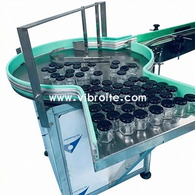 This Automatic Rotary Infeed Turntable Machine is designed and manufactured by Suzhou Vibrant Automation Co., Ltd under the Vibroite brand. It is mainly used for buffering, accumulating, and stable feeding of bottles and jars before filling, labeling, or capping processes, serving as an essential auxiliary unit in automated bottling lines.